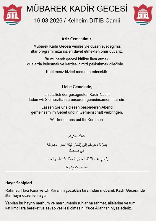 Kadir Gecesi’nde tüm cemaatimizi iftar programımıza bekliyoruz.
