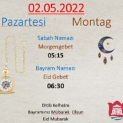 Am Eid-Tag 02.05.2022 findet das Morgengebet um 05:15 Uhr und das Eid-Gebet um 06:30 Uhr statt.